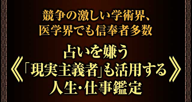 先生は私と同じ数学の徒でもありますからお話は理論的であいまいな部分がありませんでしたし、いただいた助言はどれも具体的で、実際に効果に直結するものでした。私が気付いていなかった問題や、逆に私が既に得ていた好機や武器についても教えてくださり、現職での評価や待遇、実直に言えば収入の部分がそれまでとは全く違ったものになりました。大学外部からも声がかかるようになり、不安で不眠にまで陥っていた日々が、今となっては嘘のようです。